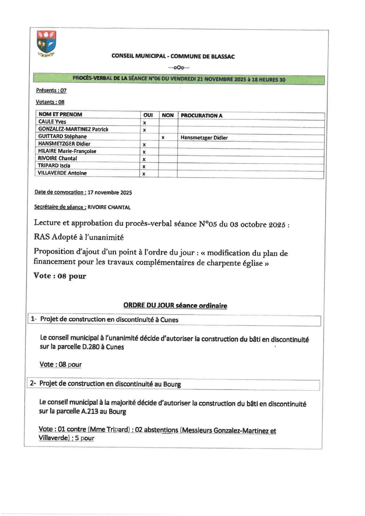 PROCES VERBAL DU 21 NOVEMBRE 2025