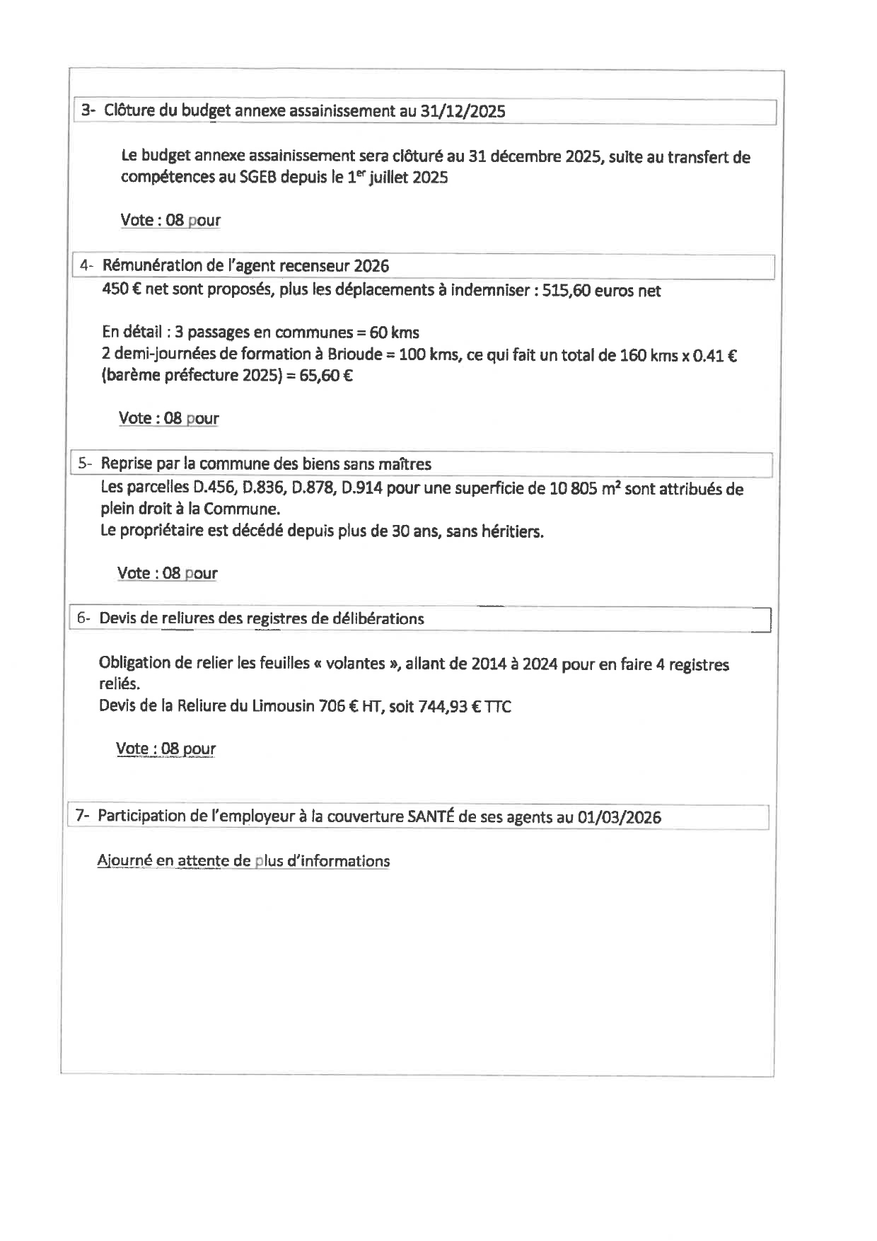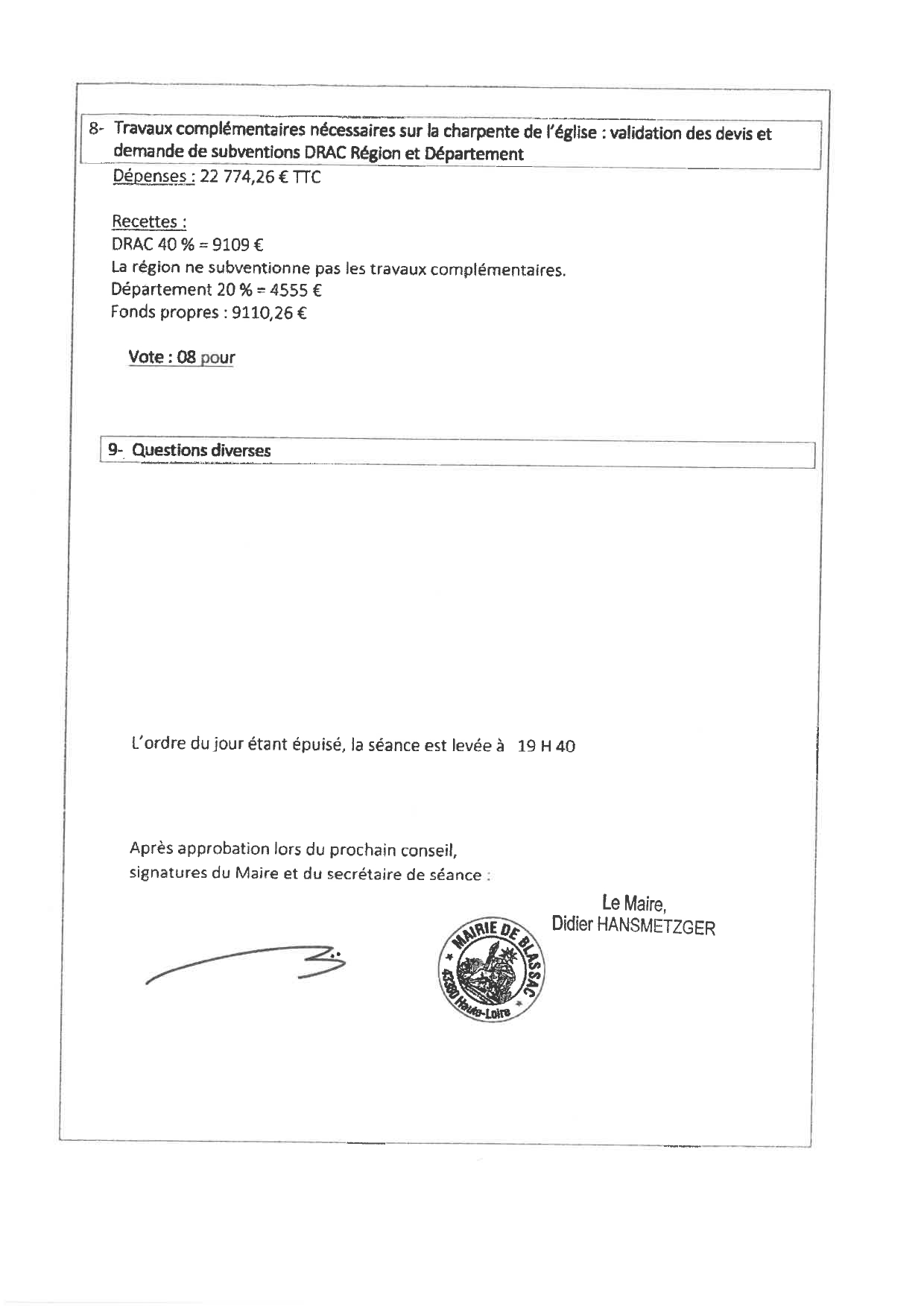 Procès verbaux de réunions du conseil municipal de Blassac
